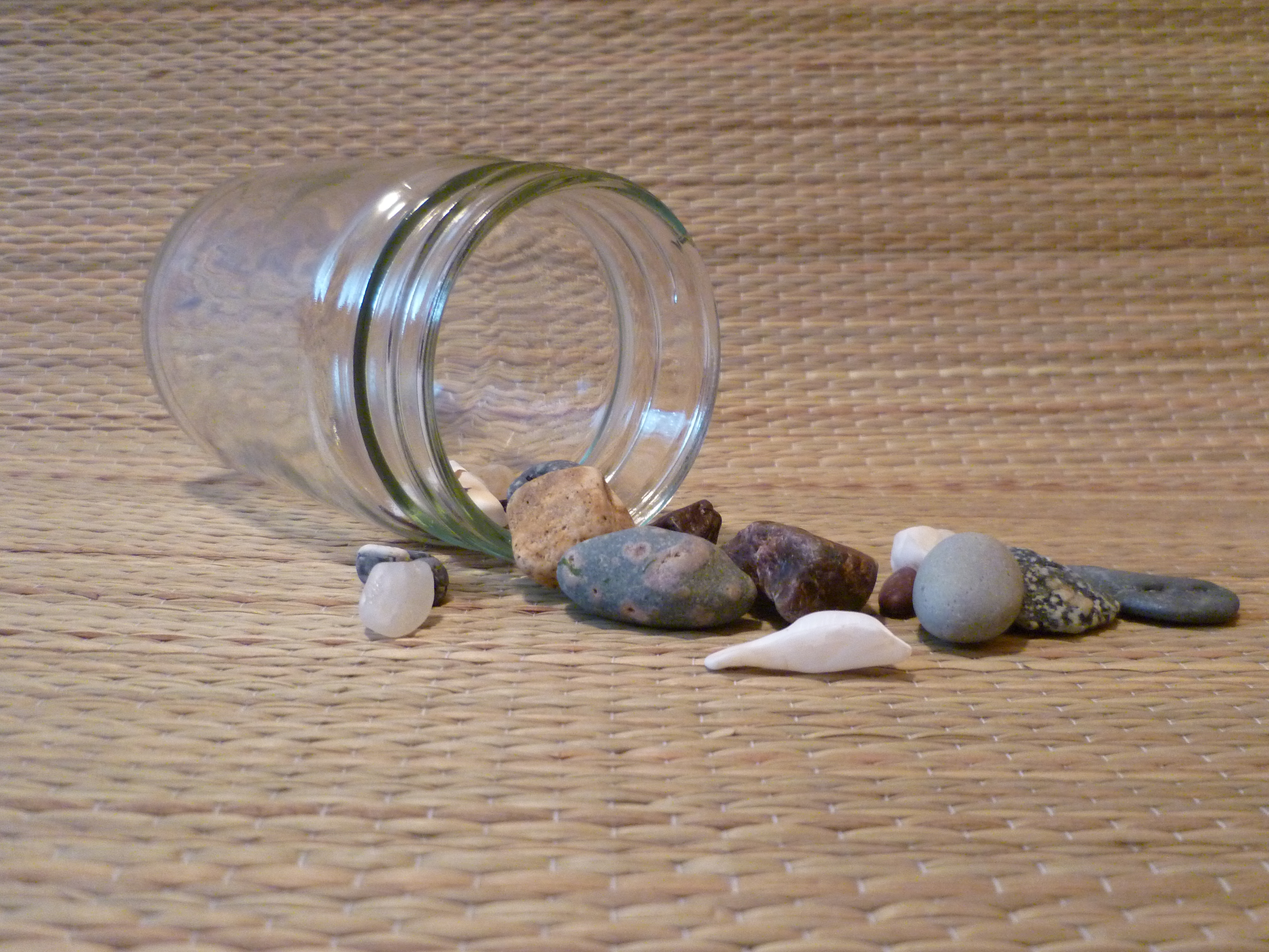 After we waved goodbye and watched her ferry leave the dock we found a cute neighborhood park with beach access to burn off some energy before our long car ride home. I sat on the shore watching the boys fish seaweed out of the water, absently picking up pebbles and sea glass while mulling over the days conversation. By the time we had to leave I had a pocket full of beach I decided I must bring home with me. Out of the blue, I told the boys that I was going to store my rocks in my summer treasure jar, an empty fireweed honey jar from the local farmers market.