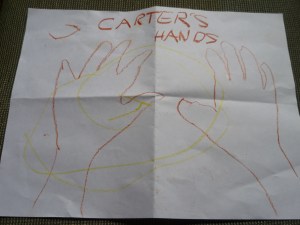 Yesterday the boys and I drove to Port Townsend where we met up with my mom for lunch. The weather was perfect; sun, blue sky, light breeze, and a soft layer of fog over the water. We got there about half an hour before my mom’s ferry was to arrive so we drove up and down Water Street noting various restaurants, a cupcake place, and a small grassy park. My mom could only spend about two hours with us so we needed to make the minutes count. And we did. We ate pizza, coloring many-legged aliens and tracing our hands with crayons on white paper while we waited.