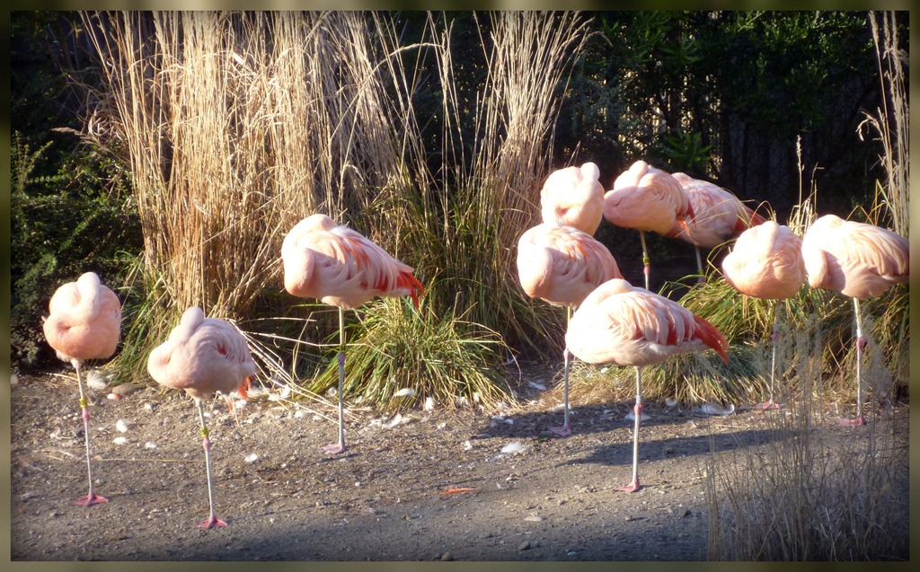 The Flamingos do not seem all that concerned that someone stole their legs.