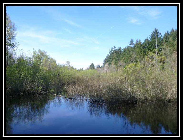 After a couple of hours spent wrangling a gaggle of six year olds and various aged siblings at Cody’s birthday party, it was nice to take a walk on some nature trails. Carter pointed out the “plane tracks” in the sky – do you see it?