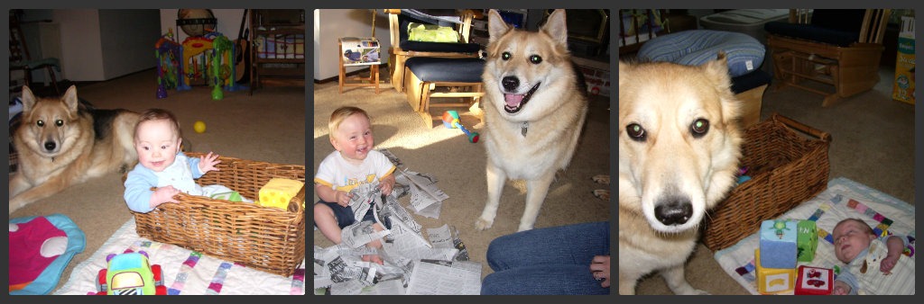 I used to walk Rosy around our neighborhood every morning before heading off to my college classes and one day got the wild hair to teach her to sit and wait every time we came to a curb. It did not take long for her to start doing it all on her own without any sort of cue from me. It was on one of these walks that we found Dexter. He was a sickly, tick infested, runt of a puppy who needed a home. The day we brought Dexter home to live with us was the day that Rosy transformed from a puppy to a protective mother figure. She showed him the ropes; in no clear terms told him to stay away from her food dish but also taught him how to jump up on the bed, run laps around the house (living room, down the hall, sharp right into the dining room, skid through the kitchen, and around the corner, back to the living room again and again) and how to sit at every curb and wait for the “ok” command before walking on.