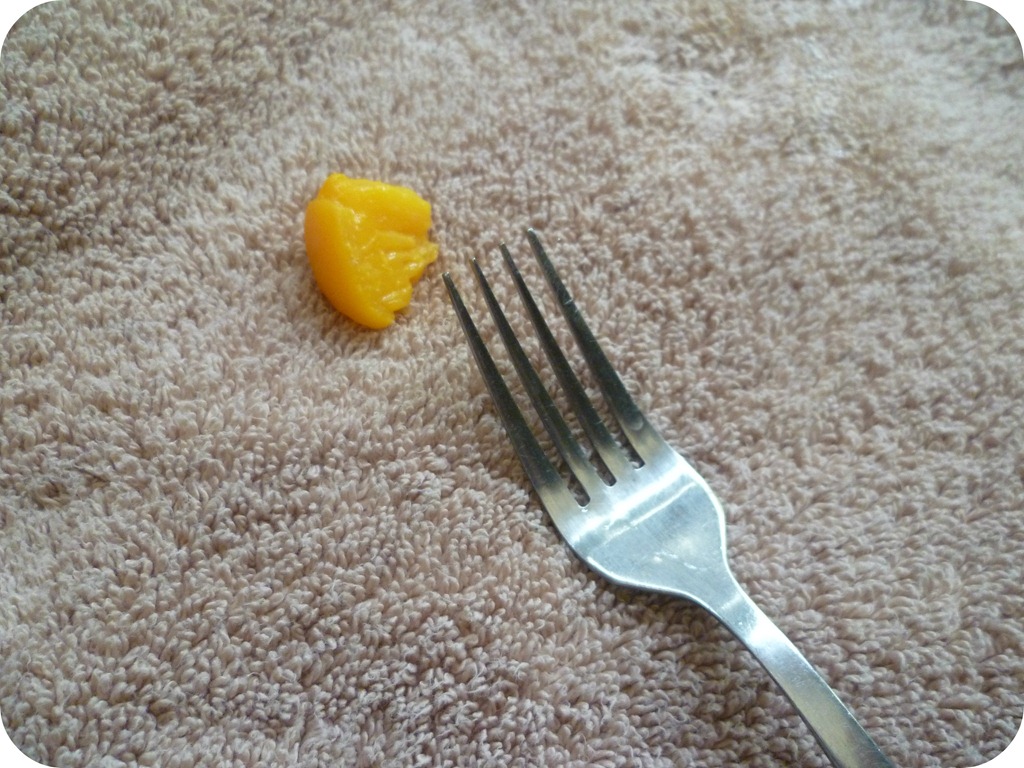 At this point my entire body sagged and started shaking.  I let out a deep breath and I hugged him and just kept hugging him.  After he squirmed out of my grasp we examined the offending piece of fruit on the floor.  Carter called it a “bad peach” and I have to say that I agree with him.