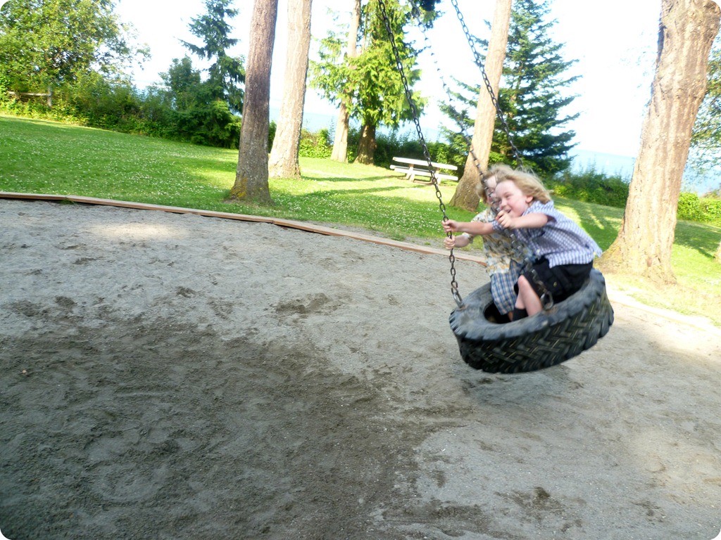 Ah tire swings. I want Hubby to put one in the backyard for my grandchildren. 🙂 The boys look like they enjoyed themselves!