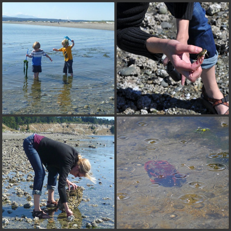 After getting our fill of blackened barracks we found our way to the beach where we had a picnic lunch and flew a kite. Bellies full, we wandered the beach looking for sea critters. The boys found some nice seaweed to play with while wading in the water.