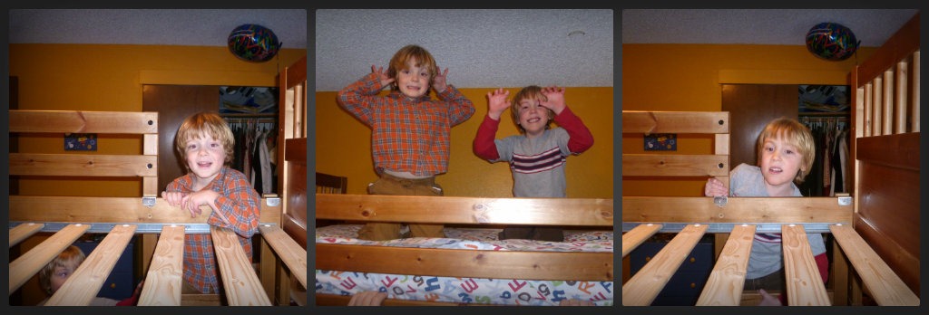 Wow did this bring back memories..my boys shared a room (even though they each had their own bedroom) until they were almost adults. The bunk bed years were arguably the most fun..forts, whispers, and getting ready for the lower bunk sleeper to push his little legs against the mattress above him – always a good time..Enjoy their joy! 😉