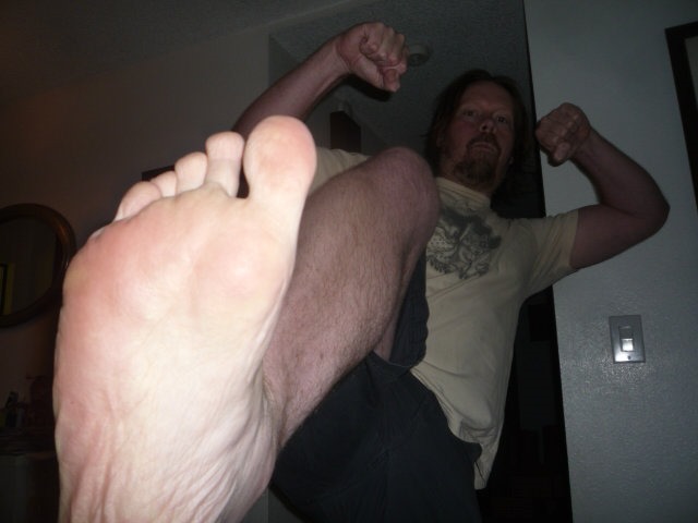 Show me your mean foot, papa. POW!