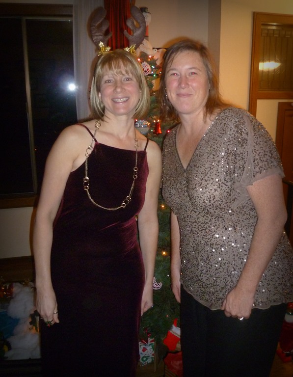 Yesterday my friend Amy and I hosted our yearly Christmas party. Yup, that is me in the reindeer antlers.