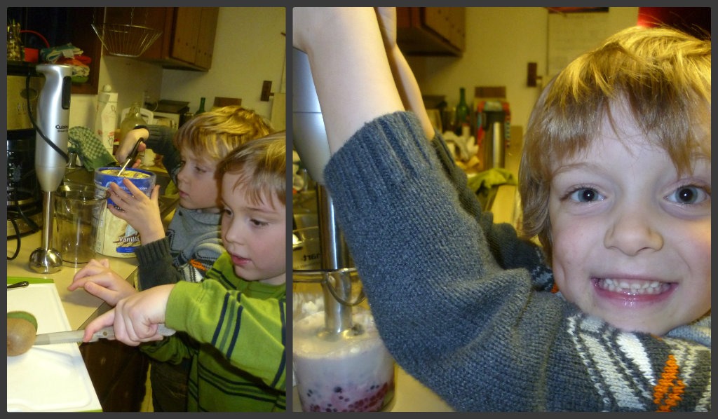 A good choice indeed! 🙂 The boys were very excited to wait for Husband to get home from work to take his order. I did have a couple pictures of Husband waiting for his smoothie, but they did not turn out very well so I decided not to post them.