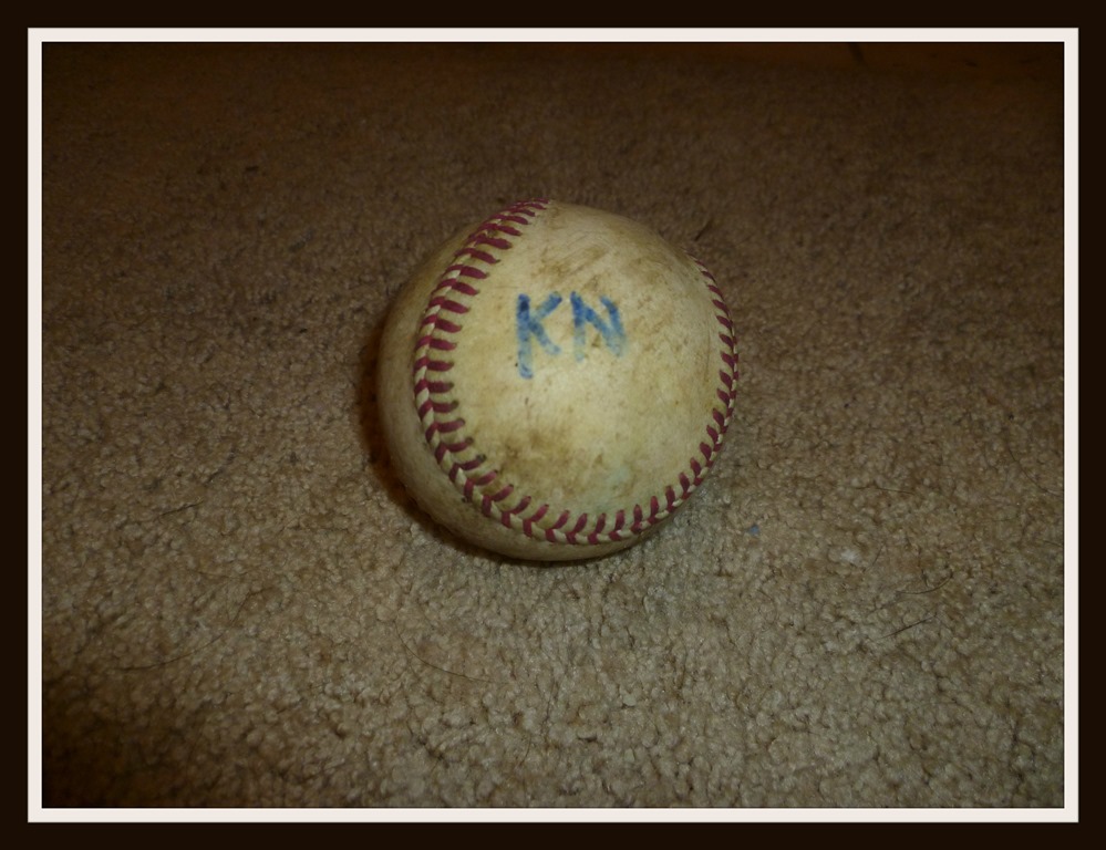 Hahaha! Well I don’t know how lucky Ken was. He lasted but a week before his stitching was gently nibbled away by Haley and I was forced to quietly, and without fanfare, throw him away. Such is the life (and death) of an 80 year old baseball…
