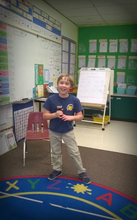 Cody was quite the ham after finding the microphone that my students use to share their Writer’s Workshop pieces.