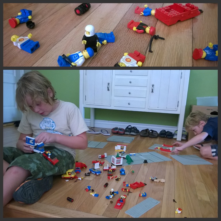 On the positive side…  We continue to love our neighborhood.  We take the dogs for walks, we chat with neighbors.  We unearthed Husband’s box of Legos dating back to the time when there were no kits and kids simply built using their imagination.