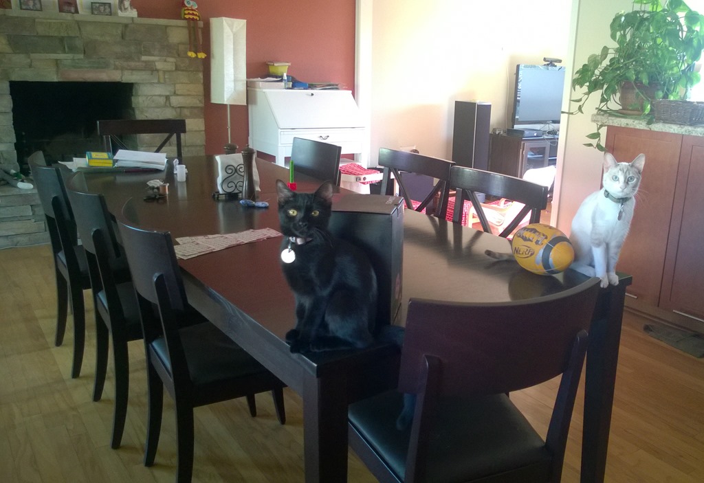On a completely unrelated note I will leave you with a picture documenting the strict no-cats-on-the-dining-room-table rule.