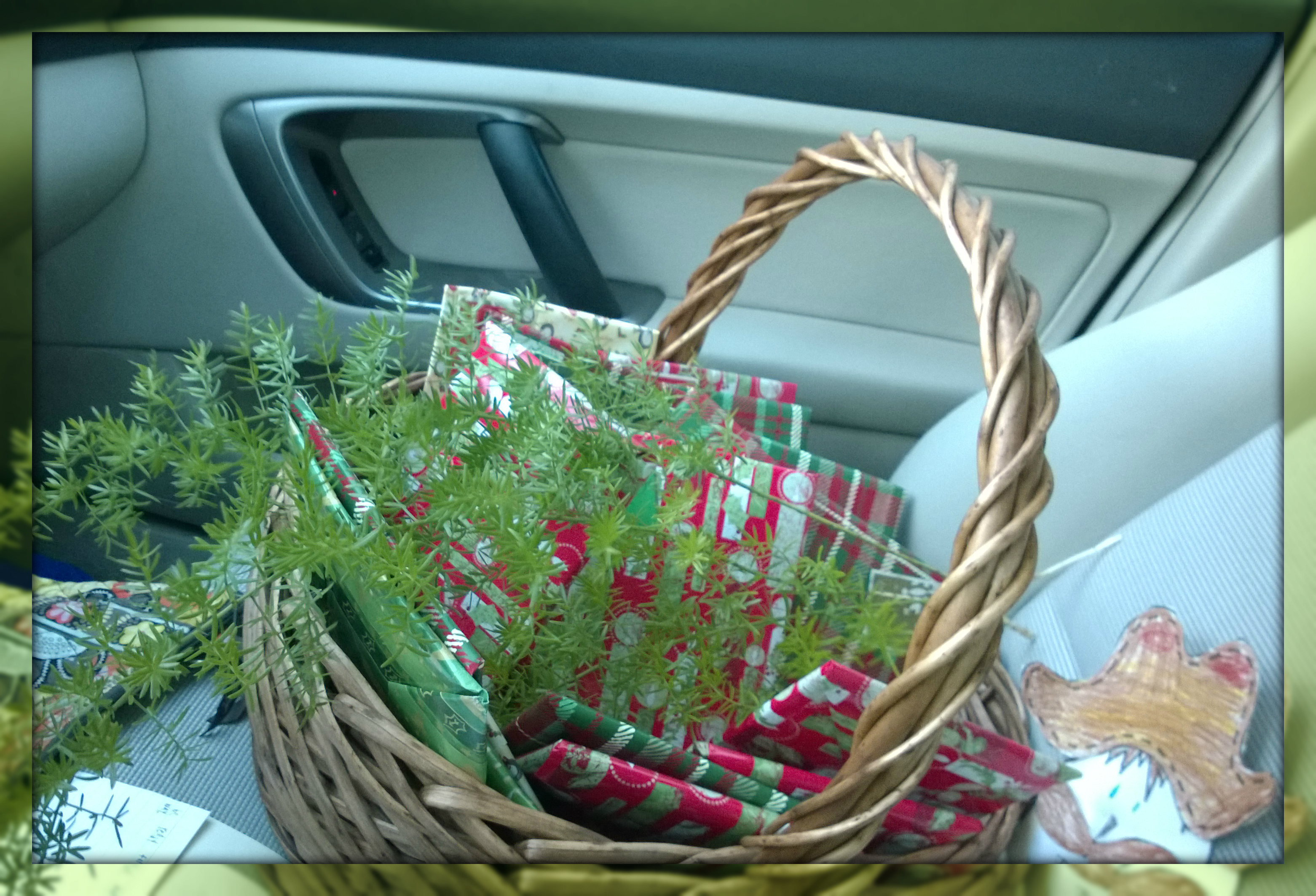I arrived at school with my basket of gifts, one for each child in my class (books, roughly at their independent reading level, with a snoopy eraser). Inside the basket, my stolen goods.