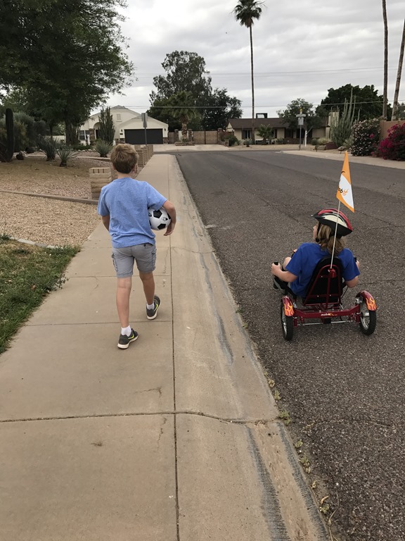 Boys, bikes, and balls as we head to our neighborhood park; a great way to start a Sunday.