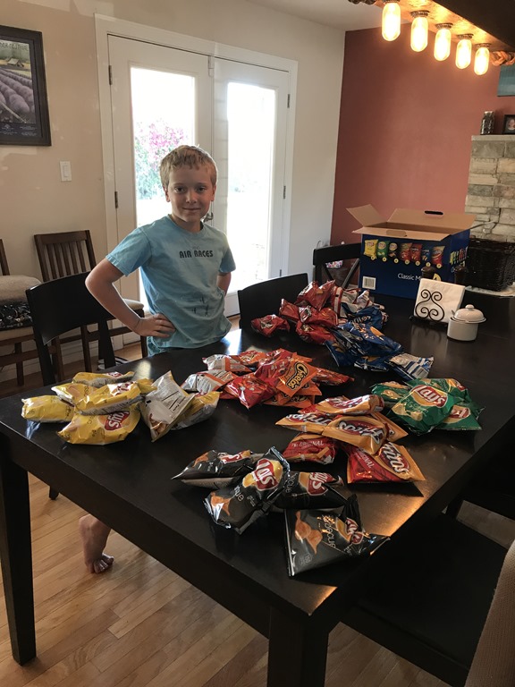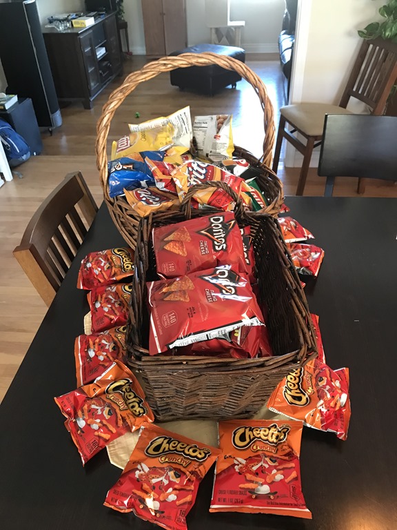 The Cheetos did not fit so he used them as a boarder.