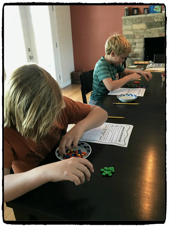 Eagerly they sorted out their 1/4 cup of M&M’s by color.