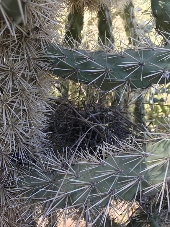 We spied lots of bird nests, some just a jumble of twigs tucked into the arms of cactus.
