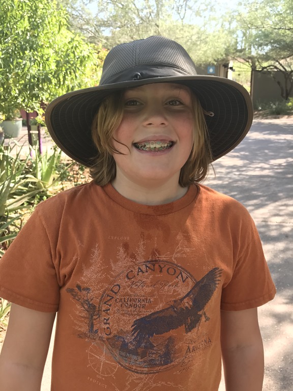 Eighty degrees on a Sunday morning.  Husband is gone on his yearly trip to the Reno air races.  The boys and I head off to the Desert Botanical Gardens, (admittedly, there was some grumbling for they wanted the Science Center which I have tired of due to the frequency of our visits).