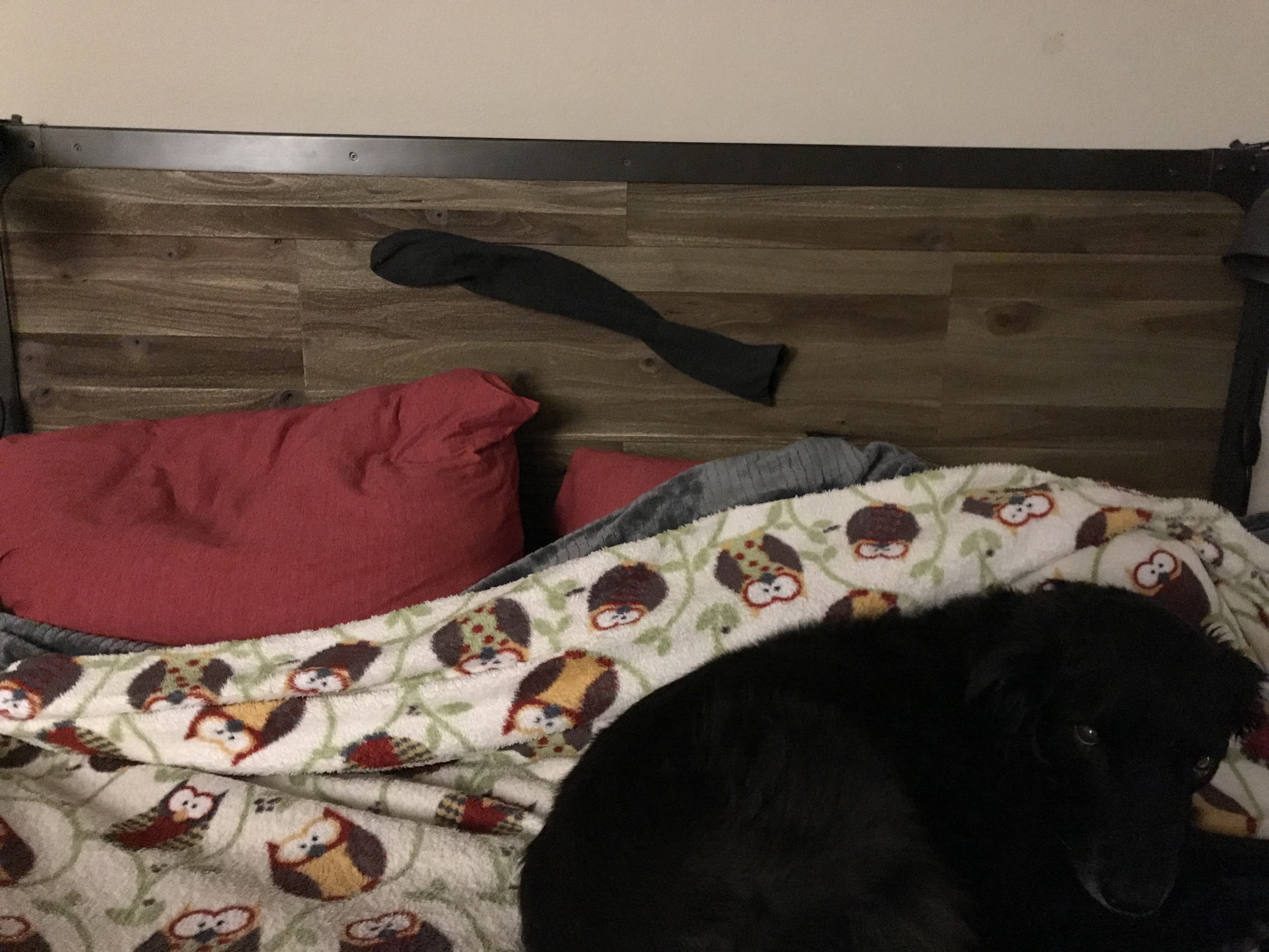 This morning I woke up, turned off my alarm, rolled over to stretch, and was shocked to find a sock clinging to our headboard.