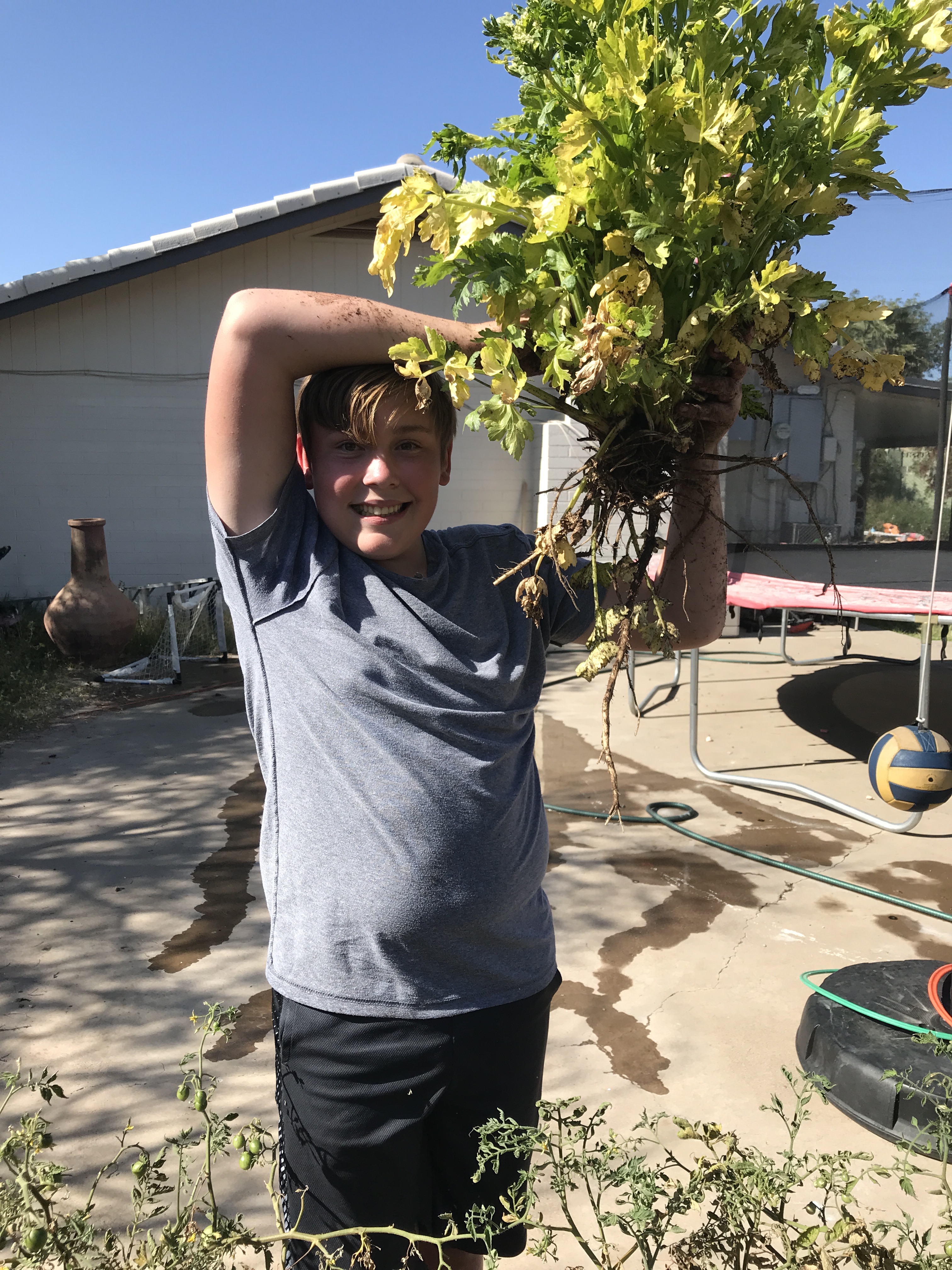 After much digging and root snapping and pulling – soil up to our elbows – we pried the celery from the earth.