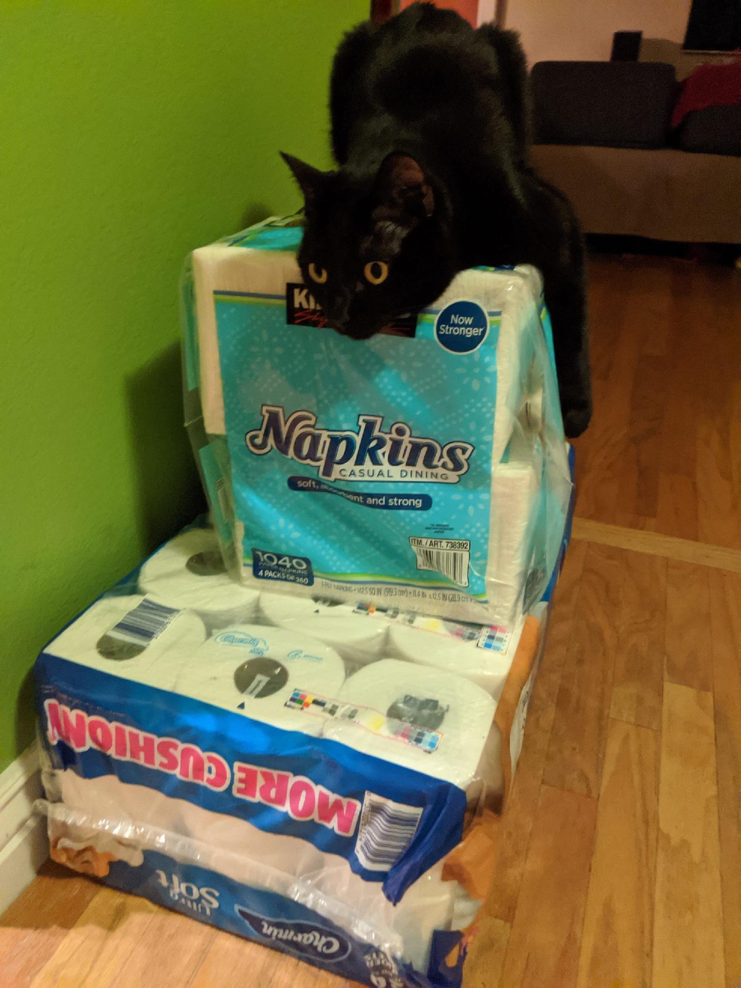 2. Haha! You should rent your cat out to the local store to discourage customers hoarding tp. 🙂