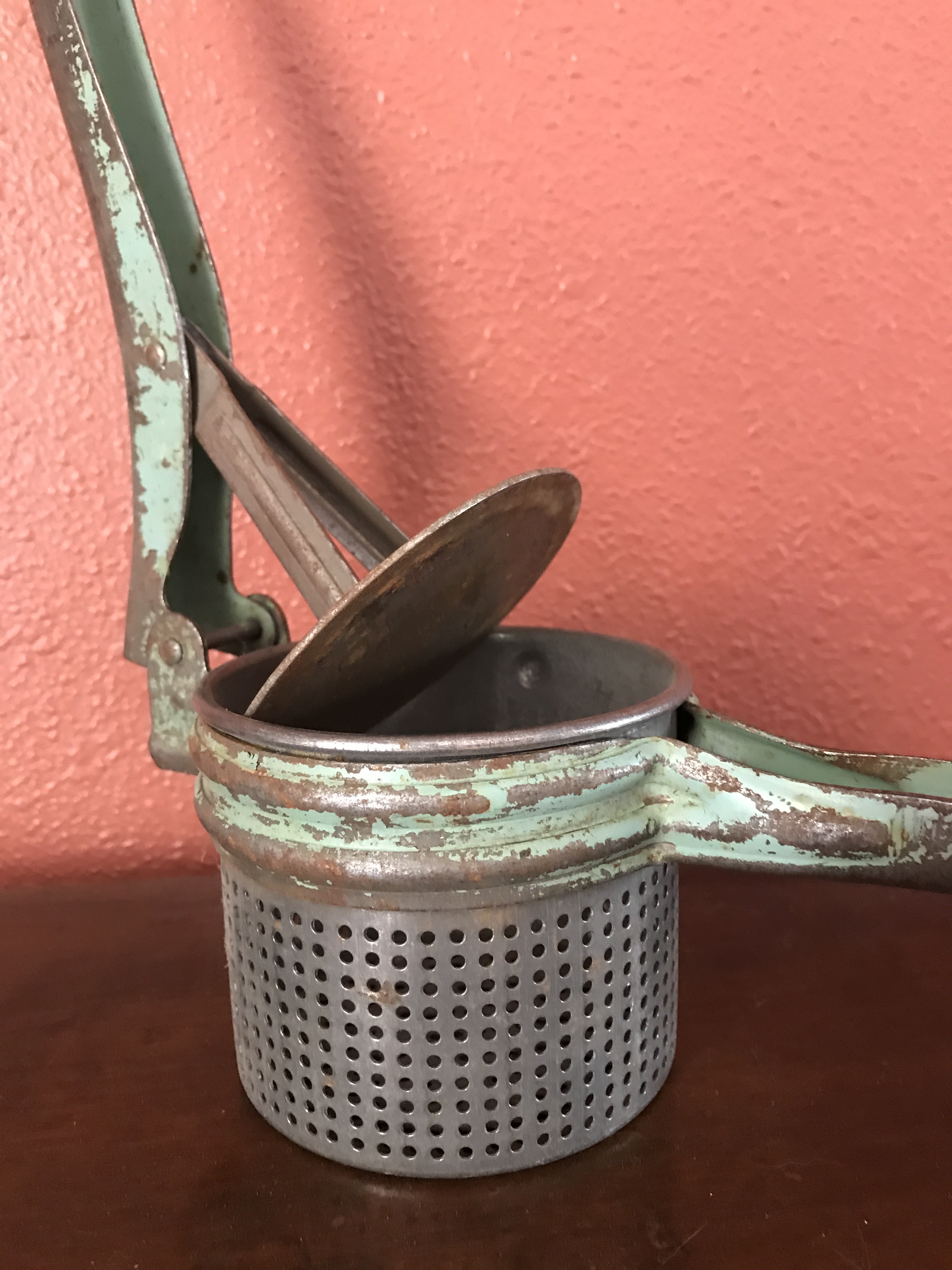 The potato ricer fits right in with the old butter churns that sit on either side of our fireplace, churns my grandmother used to make butter on the farm. You never know when you’ll find yourself in a position where you suddenly need to rice a potato or churn some butter.