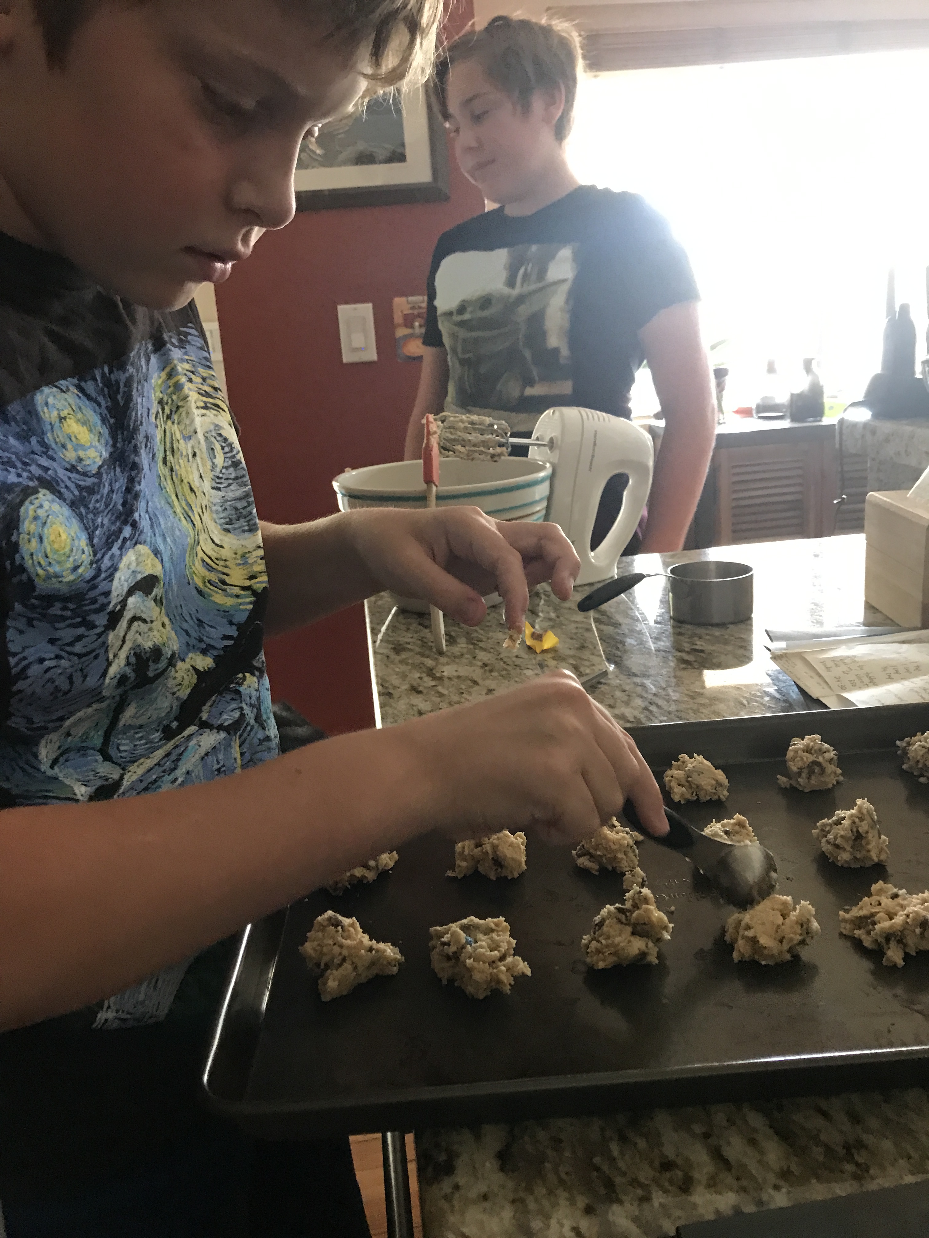Carter ran from door to door around our cul-de-sac, bags of freshly baked cookies clutched in his fist. He respected social distancing, knocking, putting the cookies down, and stepping away to wait and see if someone answered. If they did not, he picked them up and went along his way.
