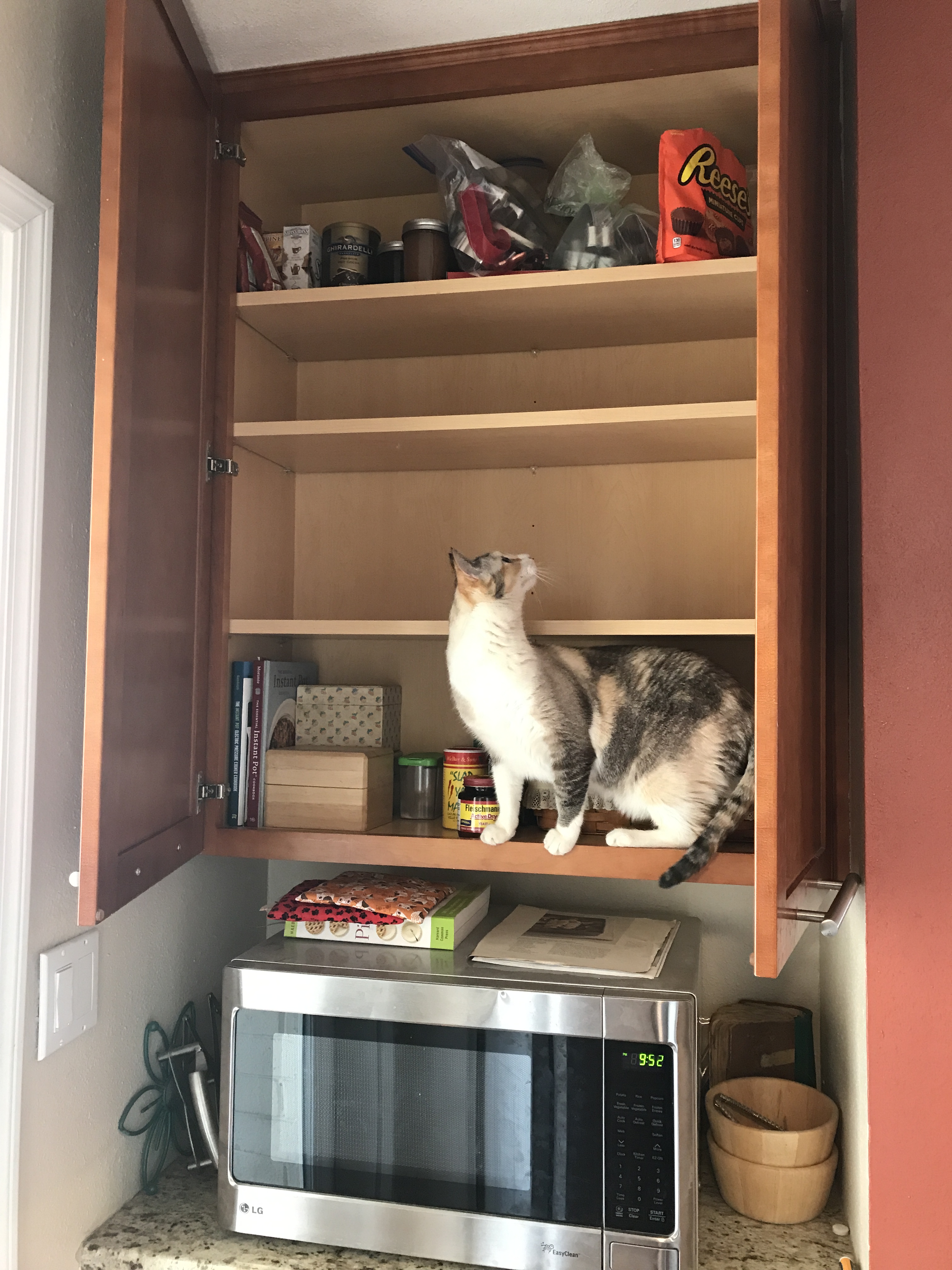Chloe decided to help me. I think she is eyeing the miniature Reese’s Peanut Butter Cups. So was I.