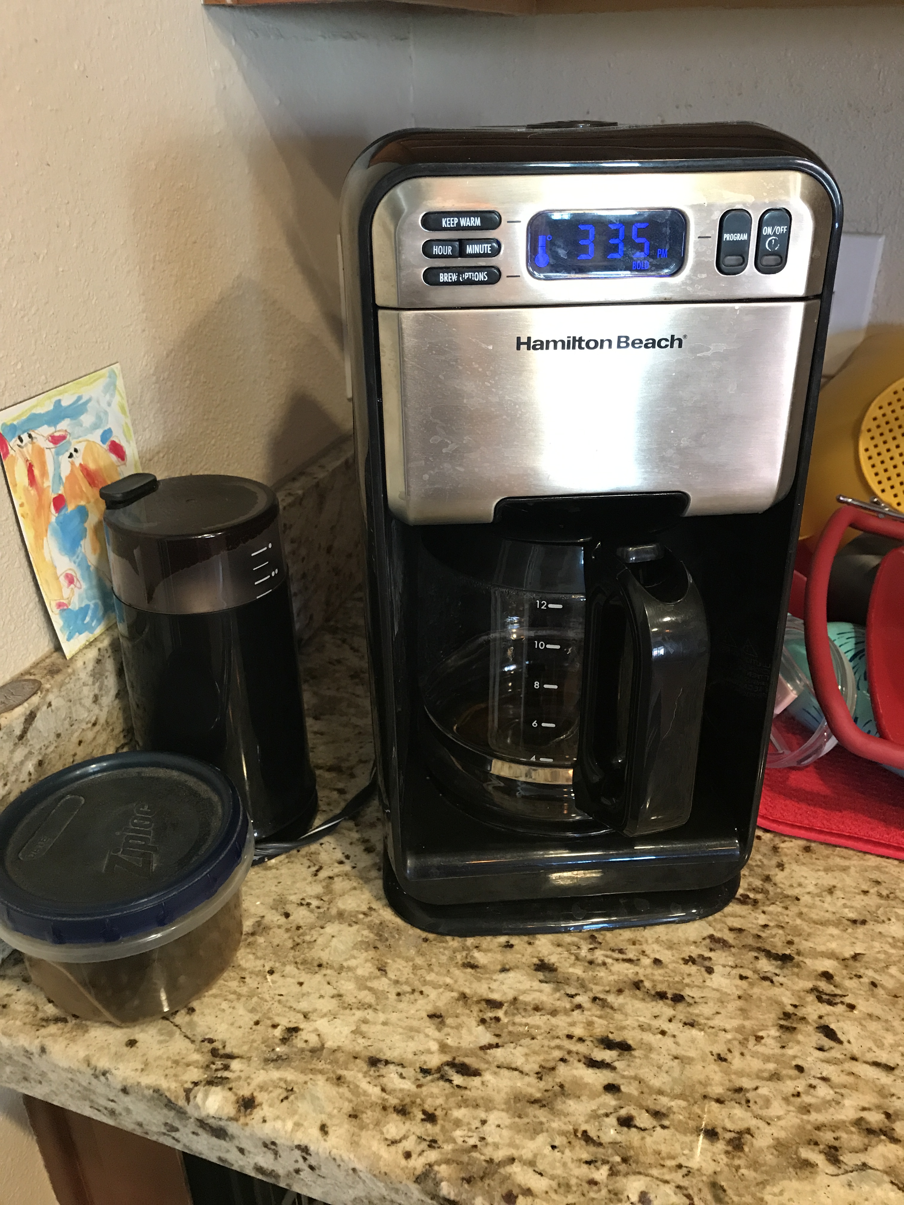 And as a bonus, the back-up coffeemaker is still in the garage waiting.
