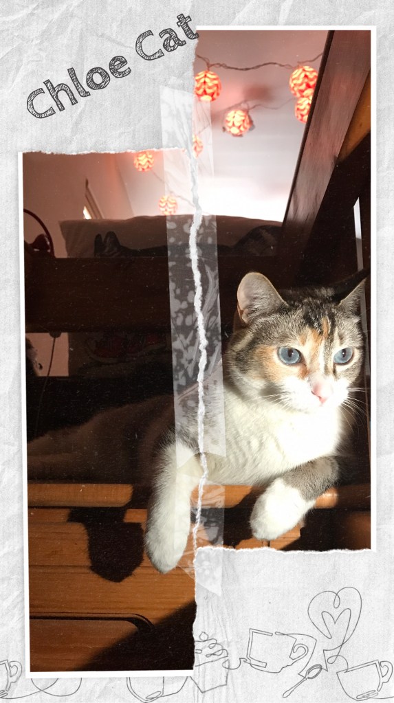 Chloe – the least photogenic of our cats, often caught looking annoyed and bitter. Does not really like any of us. Here she is caught in a rare contemplative expression under the warm glow of Carter’s new “zen lights”.