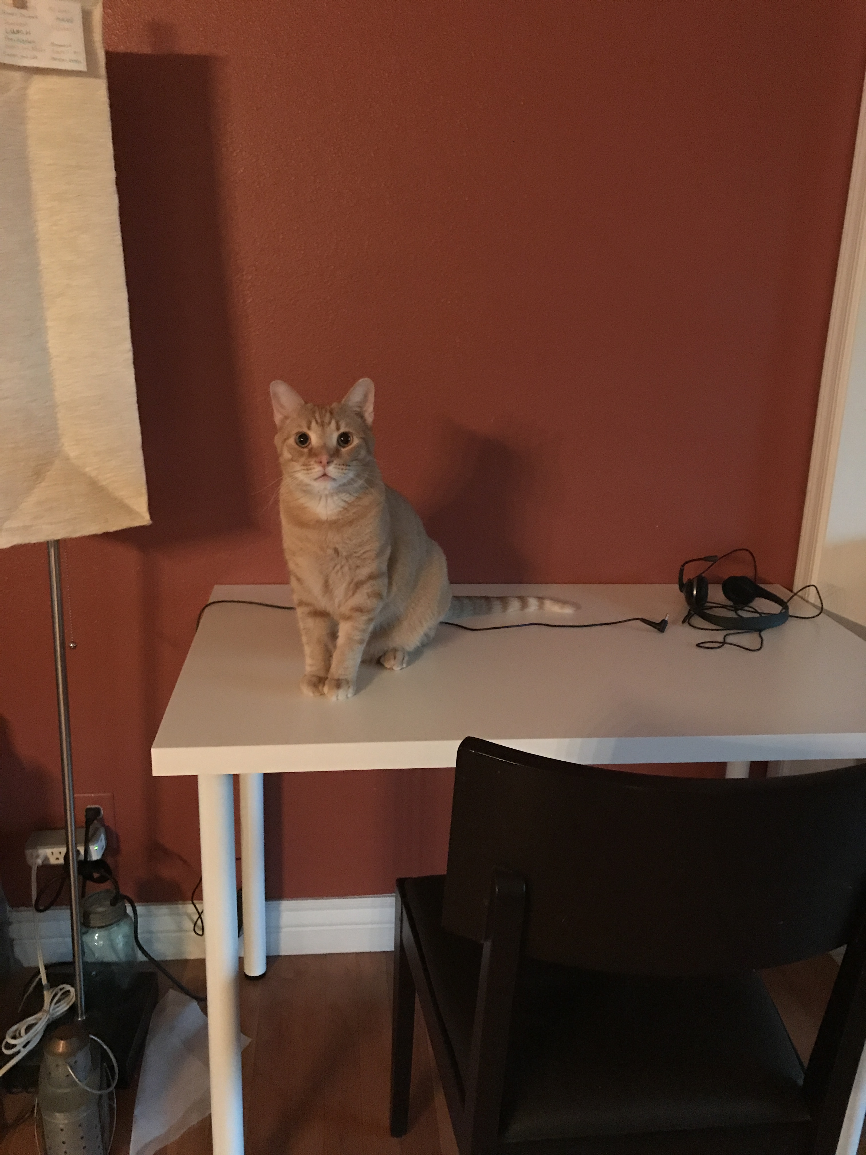 That would be nice. James’ Feline Scarf Gene is dominate and quite strong. The verb, to scarf, no longer means eating food quickly, but instead means having an orange cat wrapped around or across your neck.