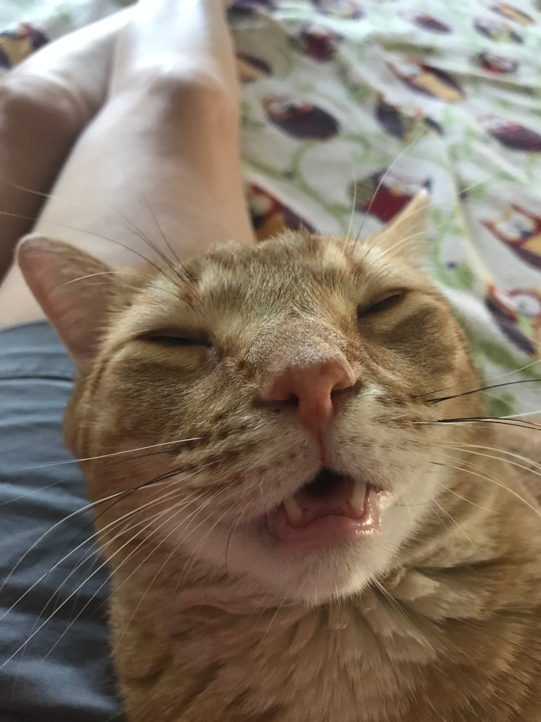 Happiness is the face of an orange cat on a Friday before a three day weekend.
