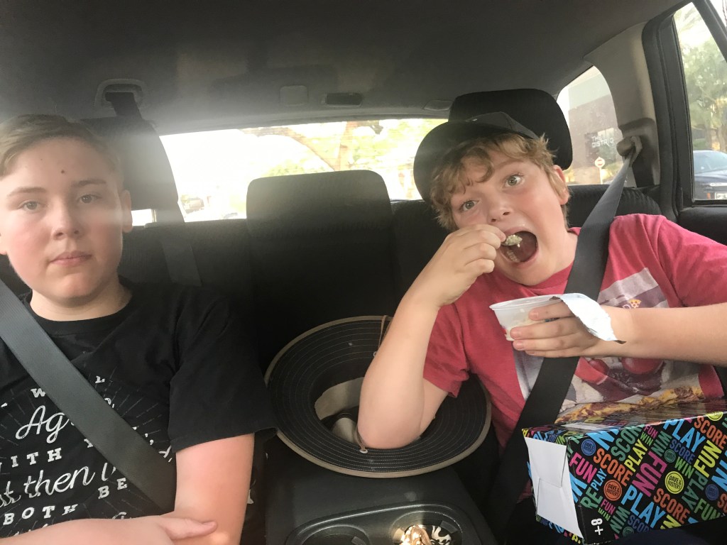 Just missed Cody’s smile but caught Carter mid bite of that funky Styrofoam looking ice cream.