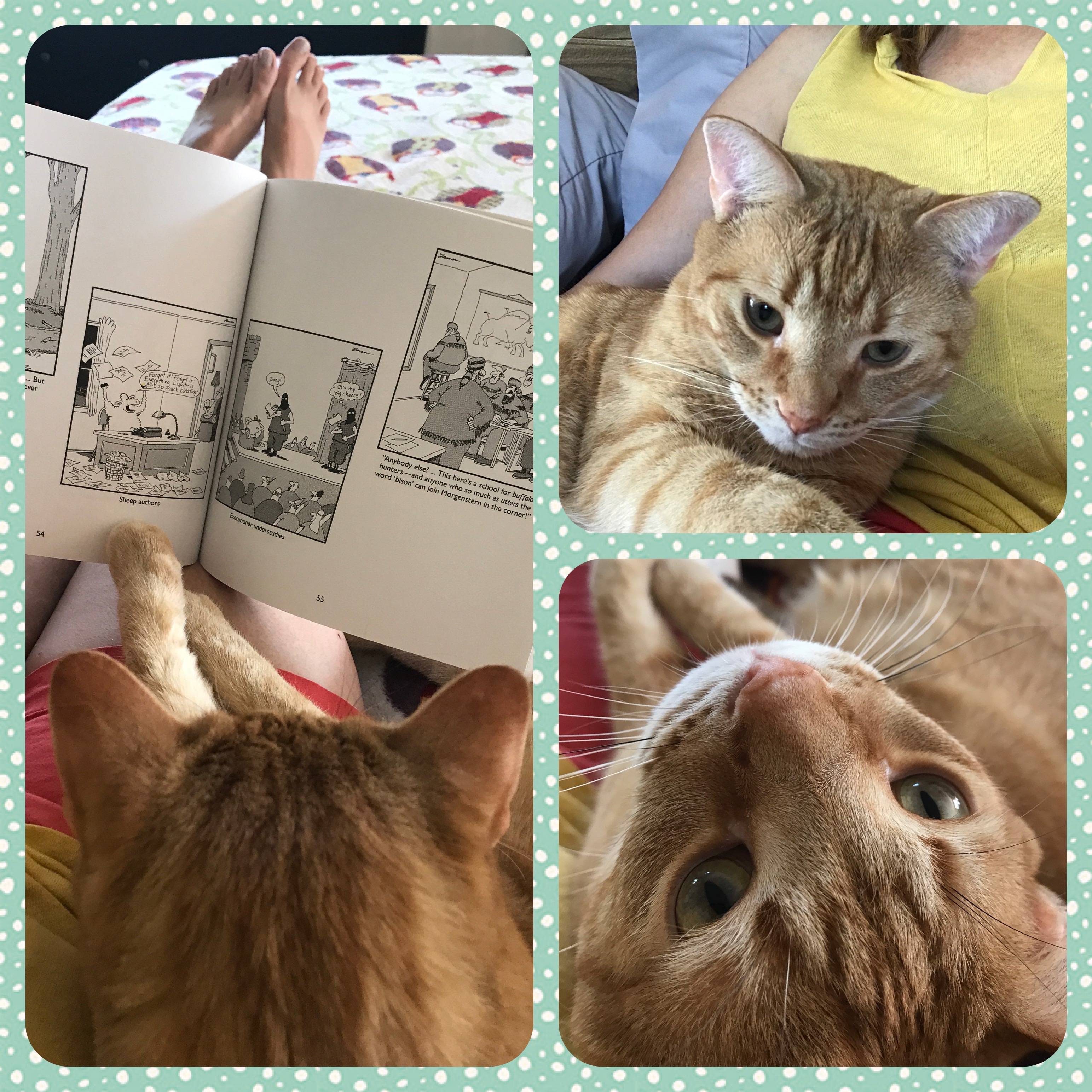Your pets are SO cute! We want a dog but until we get a fence to keep them put, we won’t get one. My husband especially loves what he calls “faces” or “the face” for a single dog. I’m going to show him how smart yours are and how kitty shares our sense of humor regarding Gary Larson.