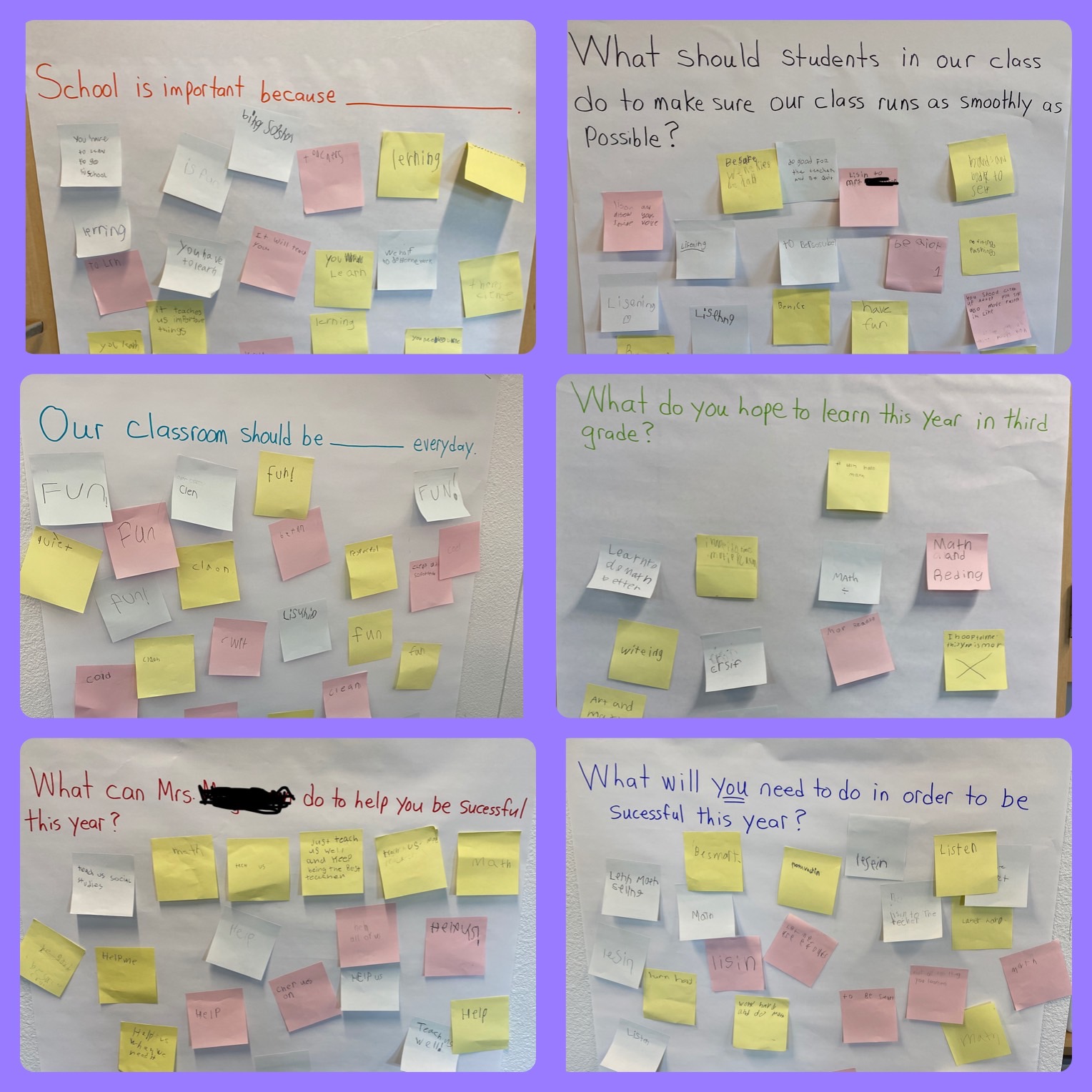 The six guiding questions students answer that help us create our Essential Agreements for the year.