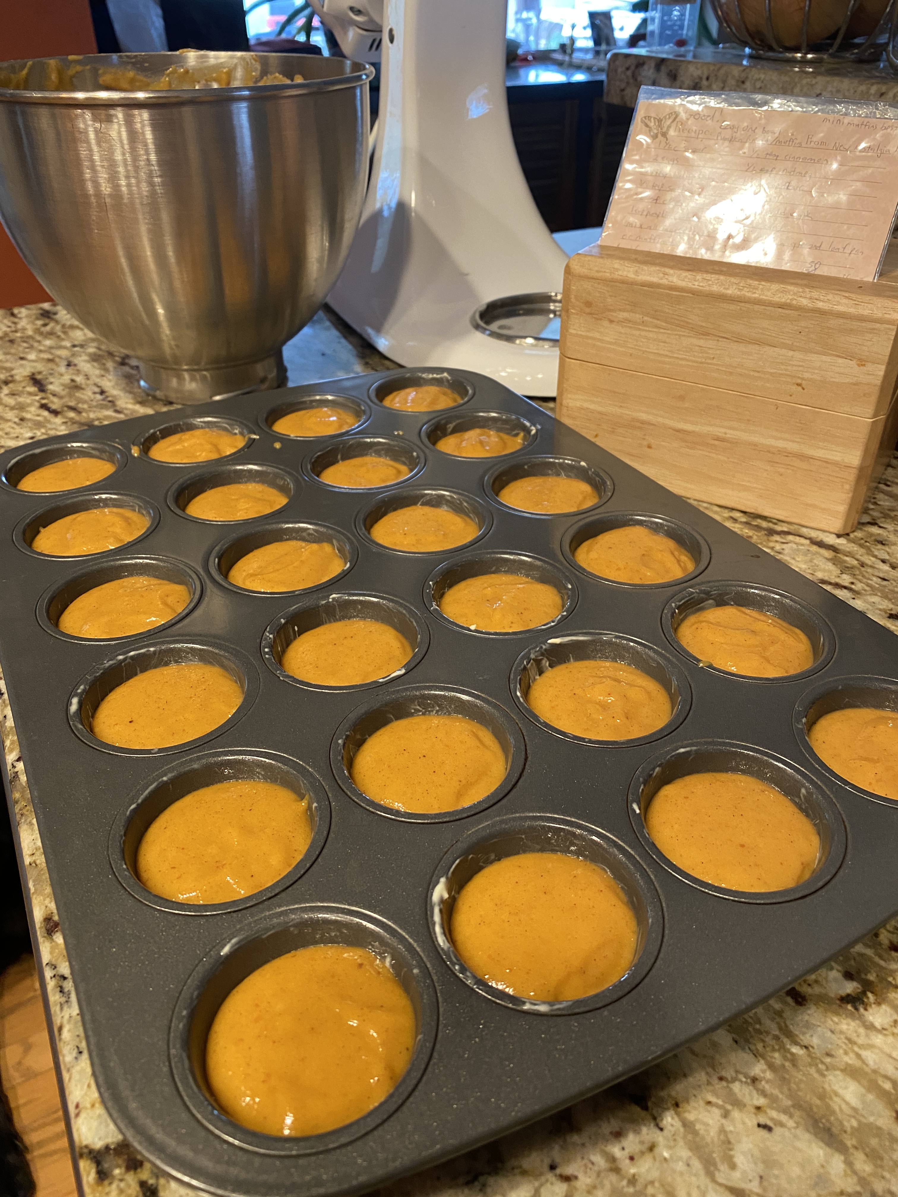 I don’t know what is for dinner tonight, but what I do know is that in about 23 minutes my first batch of mini pumpkin muffins will be coming out of the oven.