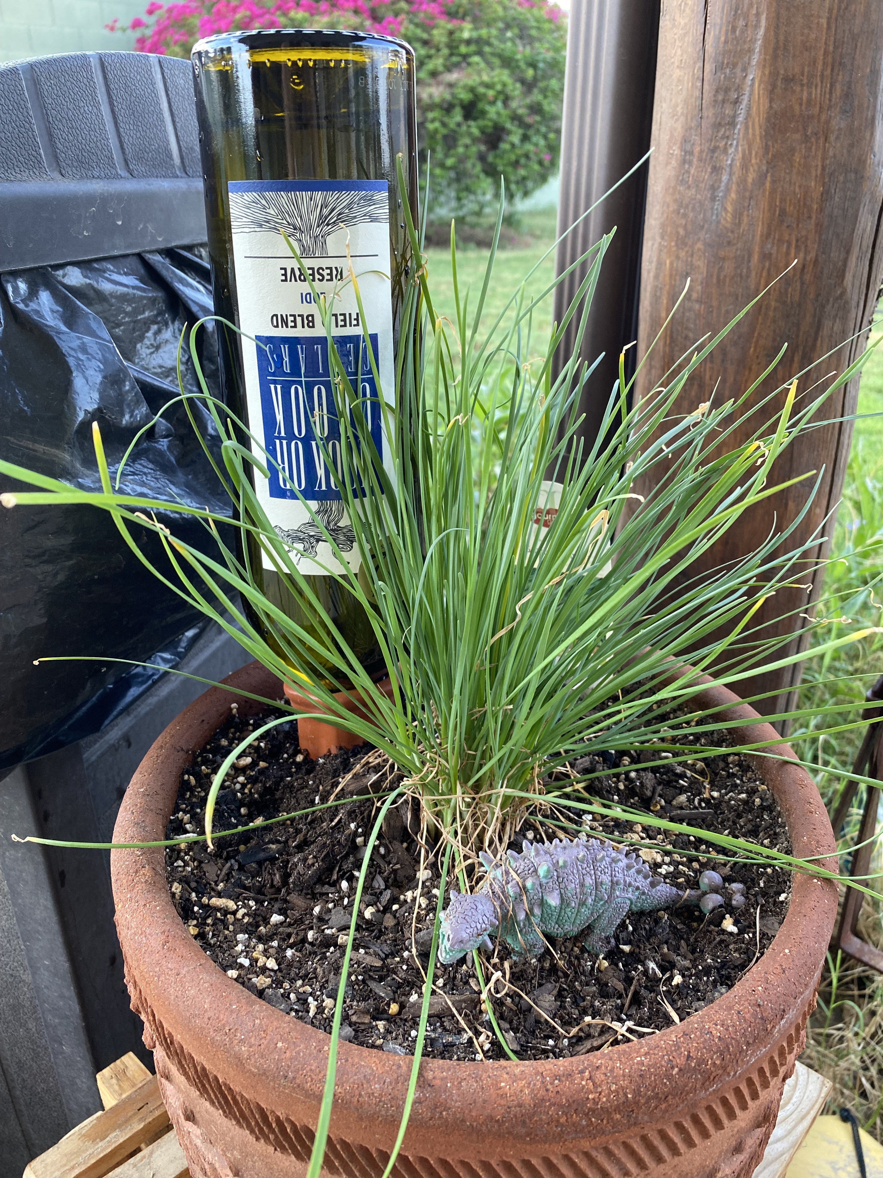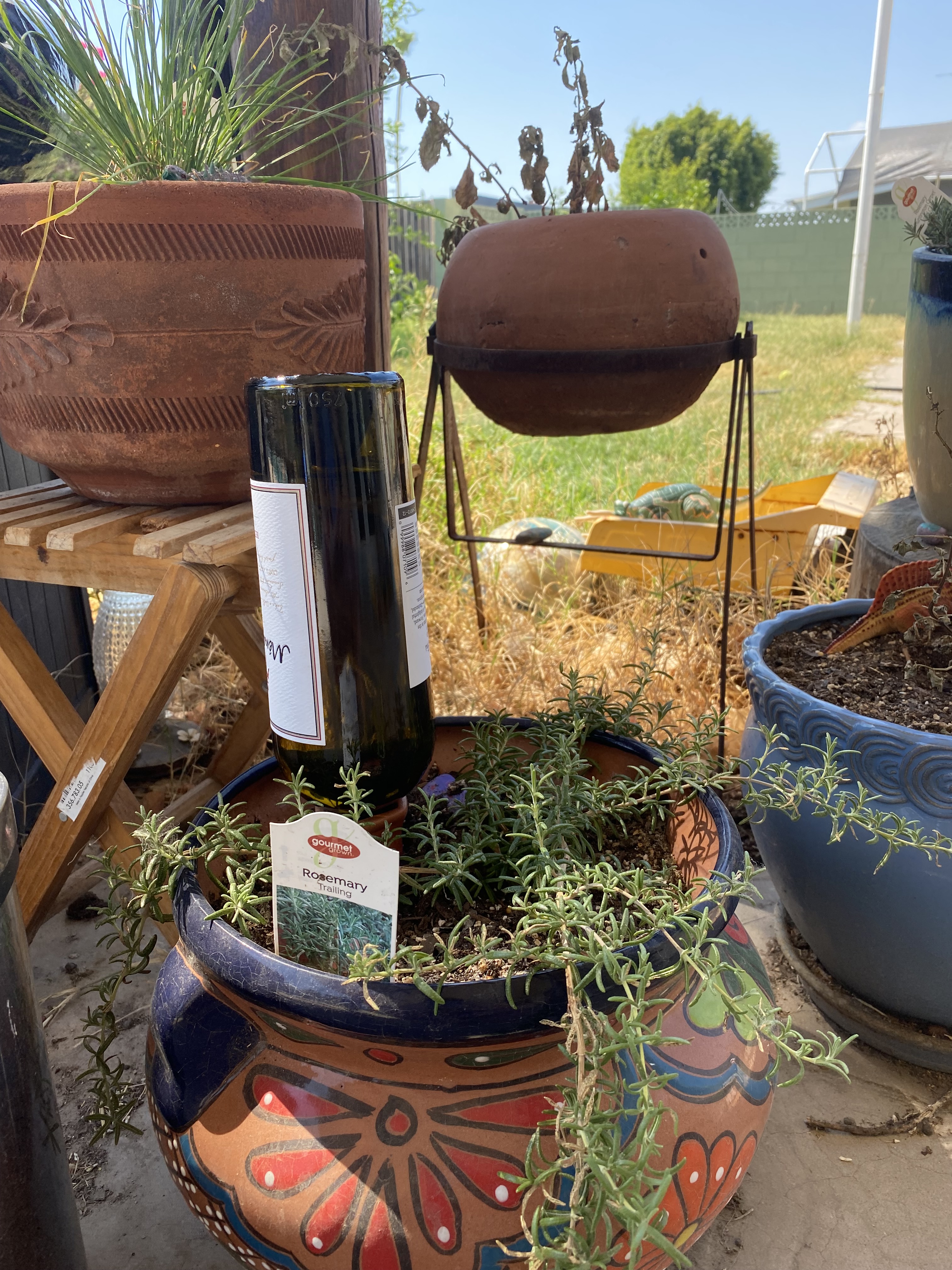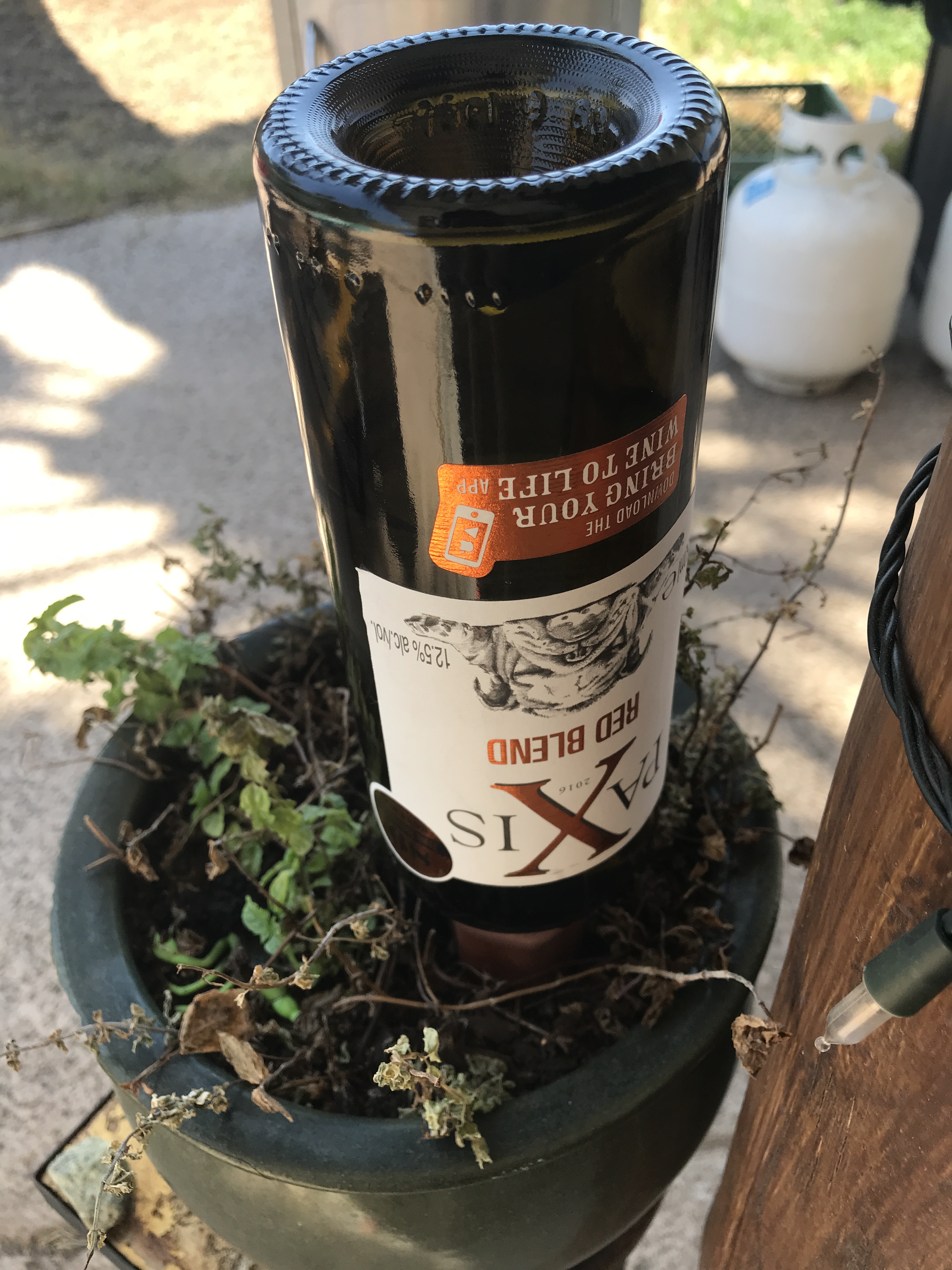 Here she is, working her way through her second bottle in almost as many days. Perhaps the brittle and brown corpses of the less fortunate herbs around her, drives her drinking problem.