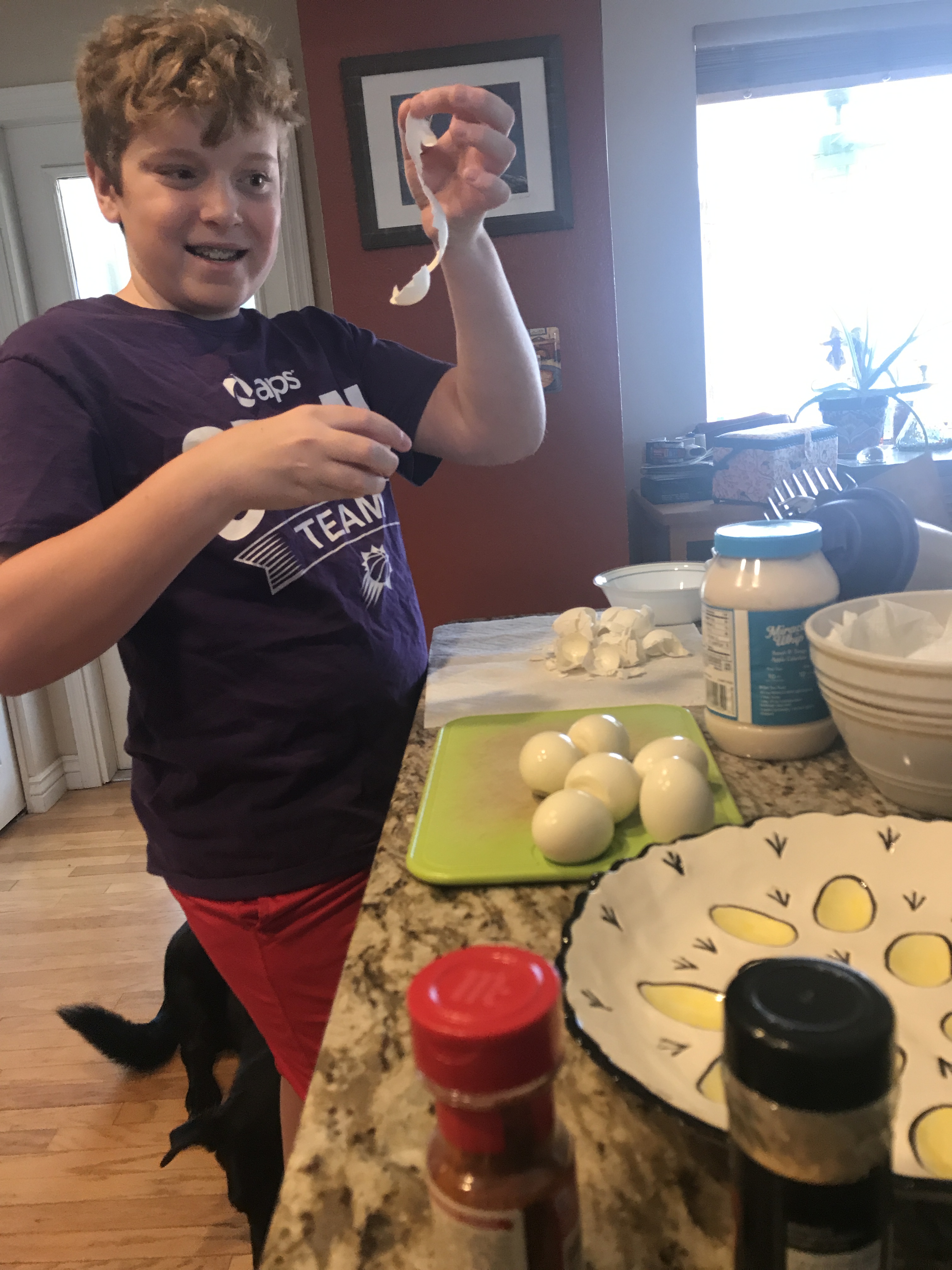 A couple days ago, fed up with Carter’s dining room table clutter, I told him he needed to tidy it up. He did and that section of the table, usually covered with books, cups, baseball cards, and trinkets was a beautifully empty. I was happy.